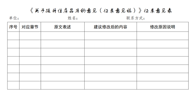 为全面落实党中央、国务院关于推动“好房子”建设的决策部署,我部组织起草了《关于提升住房品质的意见(征求意见稿)》(附件1),现向社会公开征求意见。有关单位和个人可于2025年12月28日前将征求意见表(附件2)通过以下途径和方式反馈: