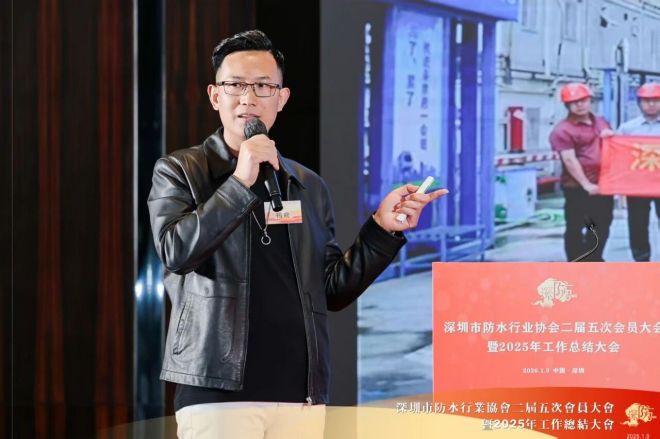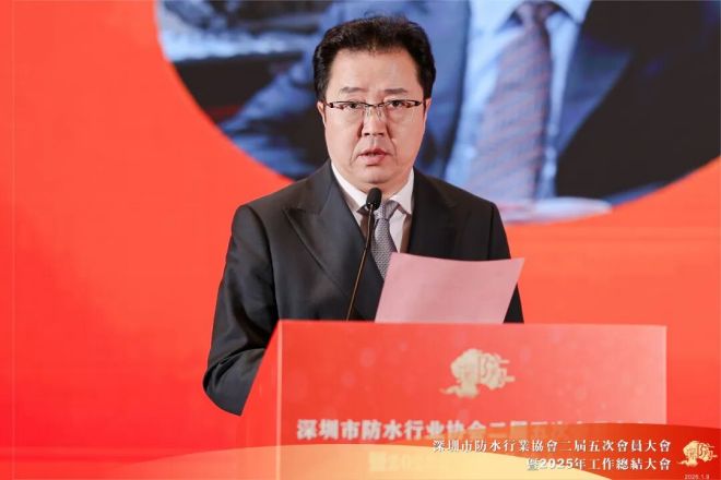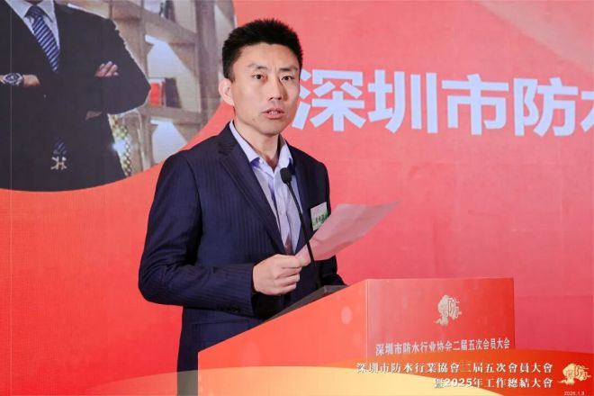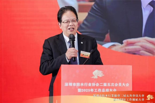 朱冬青代表中国建筑防水协会对会议召开表示祝贺,对深圳市防水行业协会荣获“5A级社会组织”表示了高度赞扬。他介绍了目前防水行业的形势,指出房地产行业仍在持续下滑,防水行业也在2025年继续遭遇着挑战。但值得期待的是,沥青防水卷材产量于去年11月在连续下降5年后首次实现由负转正,行业接近触底的信号显现,如果企业能做好提质增效和转型,有望在随后几年实现回暖。他呼吁和鼓励防水企业积极转型新赛道,并从单一的材料制造商向为客户创造价值解决方案的供应商全面转型。他表示,防水行业未来可期,希望大家提振信心,积极拥抱未来。