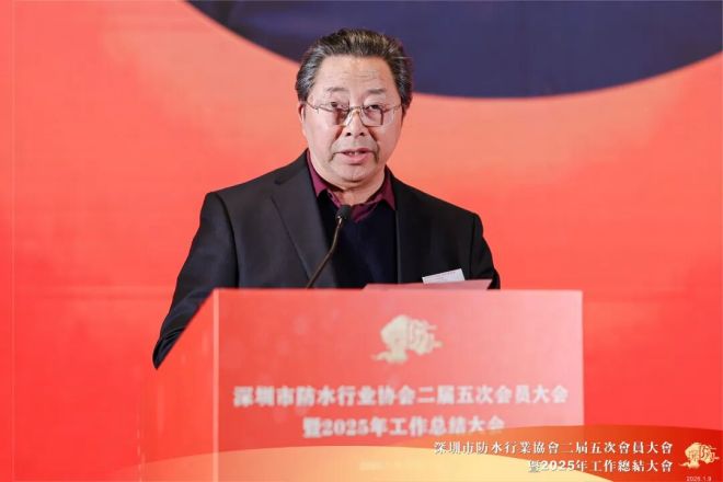 深圳市城市建设类行业联合党委第一书记葛晓光讲话,高度肯定了深圳市防水行业协会在党建、行业自律、标准建设、技术推广、培训教育等多个方面取得令人瞩目的成绩。他说,我们正处于技术飞速迭代、产业深刻变革的关键时期,深圳作为中国特色社会主义先行示范区,正全力推进高质量发展,这既为防水行业带来了发展机遇,也提出了更高标准的发展要求。他希望深圳市防水行业协会、协会党支部、粤港澳大湾区防水产业联盟继续发挥桥梁纽带作用,带领全体会员单位抢抓“十五五”开局机遇,凝心聚力、奋发作为,为深圳建设作出新的更大的贡献。