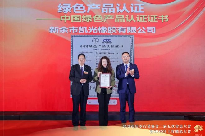 新余市凯光橡胶有限公司华南区负责人林晨馨获颁“中国绿色产品认证证书”。